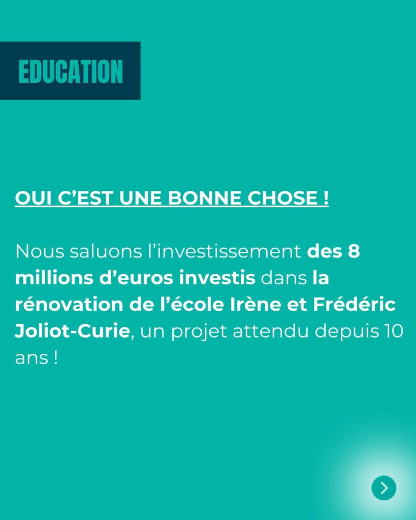 🏠 Nous saluons les 8 millions d’euros investis dans la rénovation de l’école Irène et Frédéric Joliot-Curie, un projet attendu depuis plus de 10 ans.