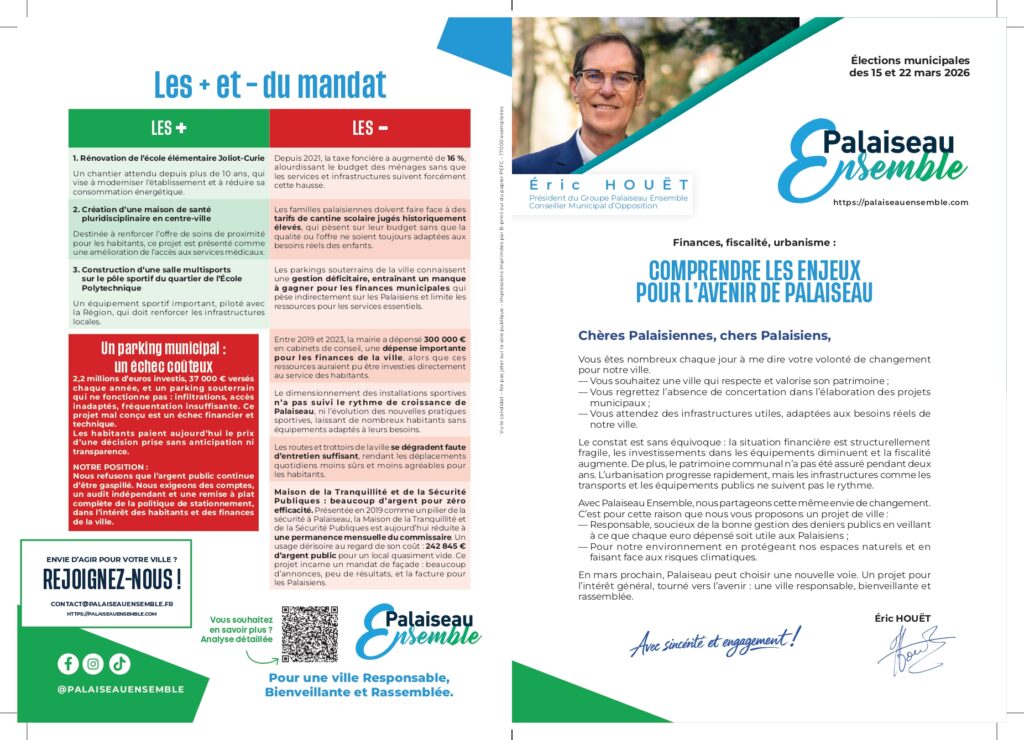 Lettre de candidature d’Eric HOUET aux Palaisiennes et Palaisiens